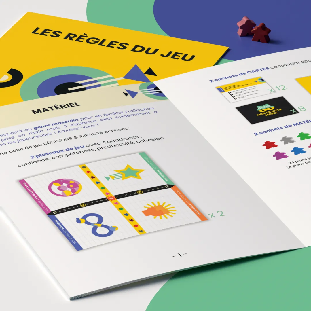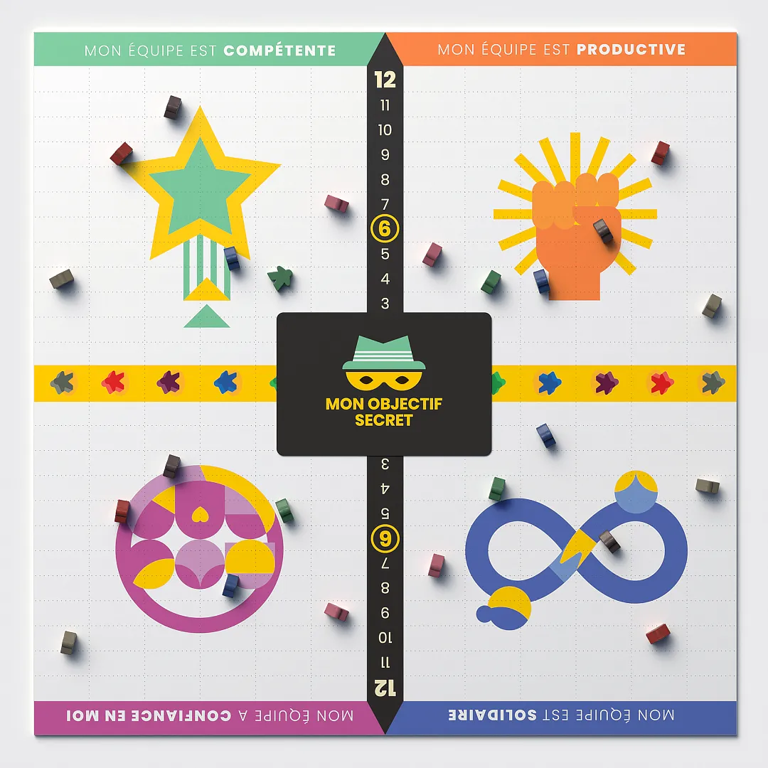 Solution : Nous avons conçu "Décisions & Impacts", un jeu de formation entièrement sur mesure. Ce jeu offre aux managers l'opportunité d'expérimenter et d'analyser les répercussions de leurs décisions managériales. Il explore quatre axes clés : la confiance de l'équipe envers son manager, la cohésion d'équipe, le développement des compétences et la productivité au travail.
