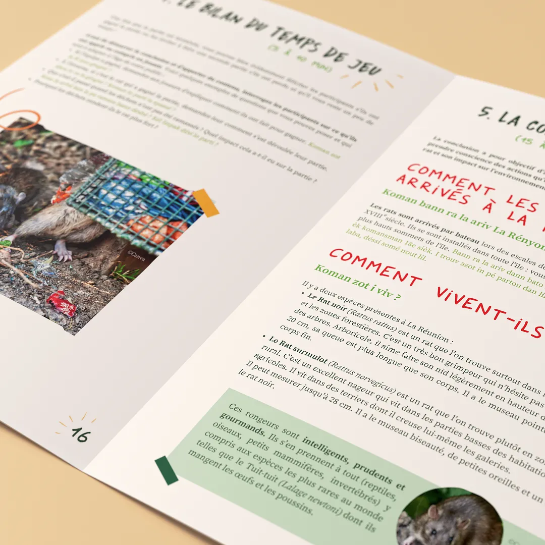 Contexte client : Le Parc national de La Réunion souhaitait sensibiliser le grand public aux enjeux cruciaux de la préservation de la biodiversité, particulièrement face à l'impact de l'expansion du rat sur le territoire. L'objectif était de créer un support éducatif engageant, capable de toucher un public très large, des jeunes enfants aux adultes.