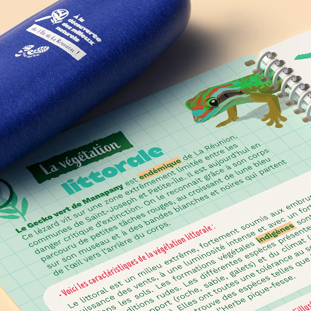 - Support pédagogique sur mesure : Conception complète de mallettes prêtes à l'emploi, adaptées aux objectifs de découverte de la nature et du patrimoine de La Réunion.