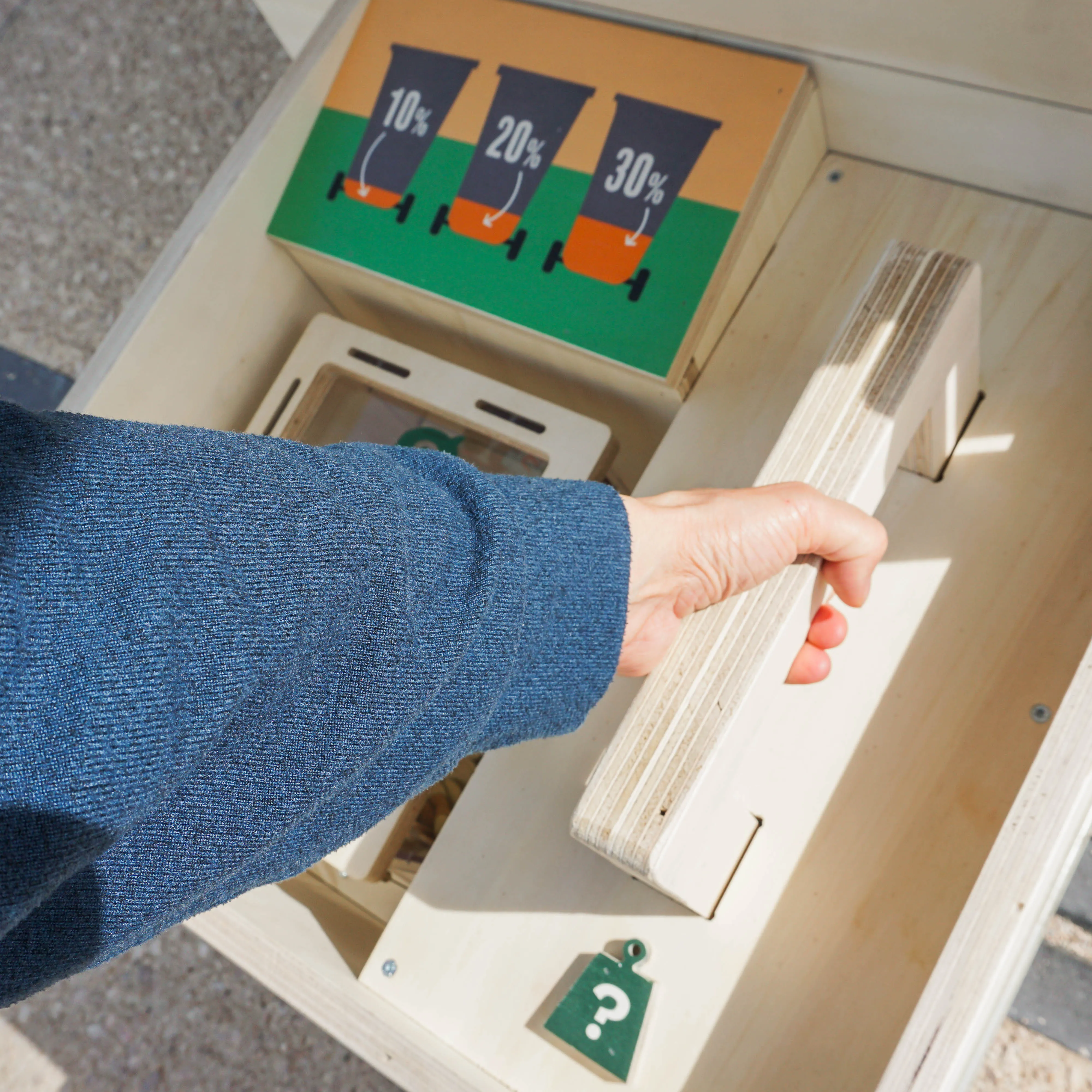 Résultats & impact : Ce stand événementiel offre à notre client un outil de médiation innovant pour engager le public sur la question des biodéchets. L'approche low-tech favorise un lien direct avec les visiteurs, optimisant leur temps d'interaction et leur désir d'échange avec les animateurs. Il transforme un sujet technique en une expérience ludique et éducative, contribuant activement à l'adoption de la solution de tri des biodéchets.