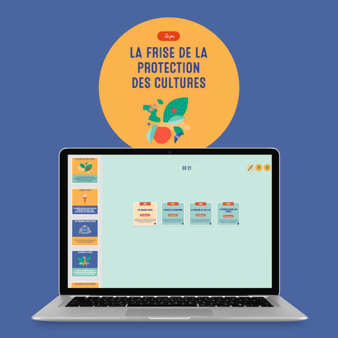 Solution : Nous avons développé "La frise de la protection des plantes", un jeu de sensibilisation basé l'un de nos mécanismes en marque blanche. Conçu pour les salons, il existe en versions physique et digitale, offrant une grande flexibilité de déploiement. Ce jeu est un outil puissant pour engager les publics et promouvoir une agriculture attentive aux écosystèmes.